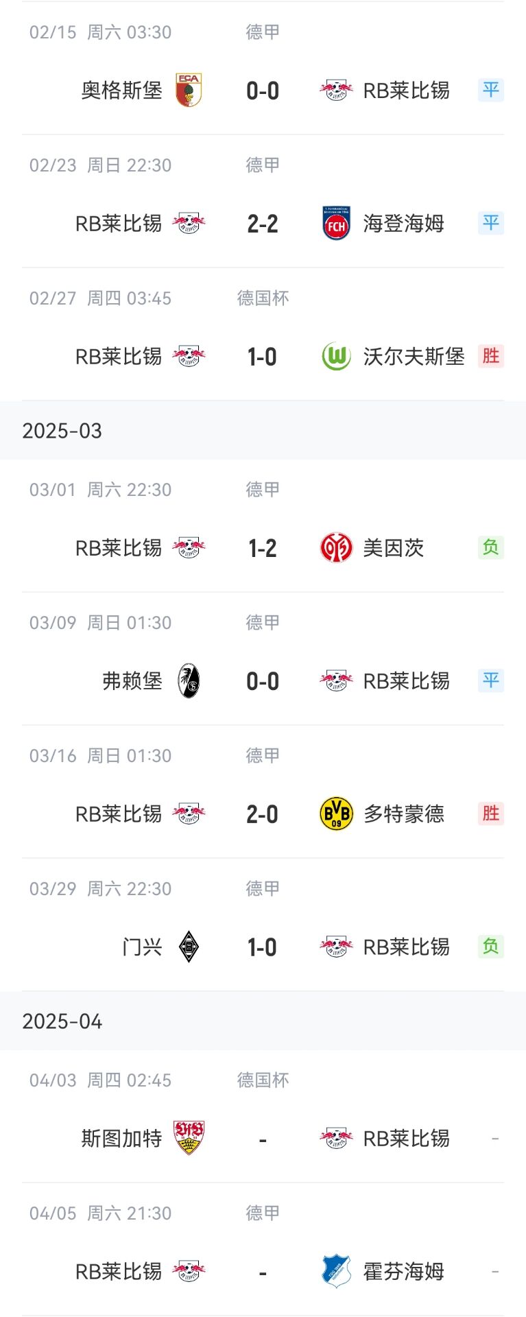 联赛方面,RB莱比锡近期也是表现糟糕,近6轮比赛仅战胜了多特蒙德,本赛季11胜9平7负仅排名积分榜第6位,处在欧战区边缘。但RB莱比锡在德国杯中杀入了半决赛。