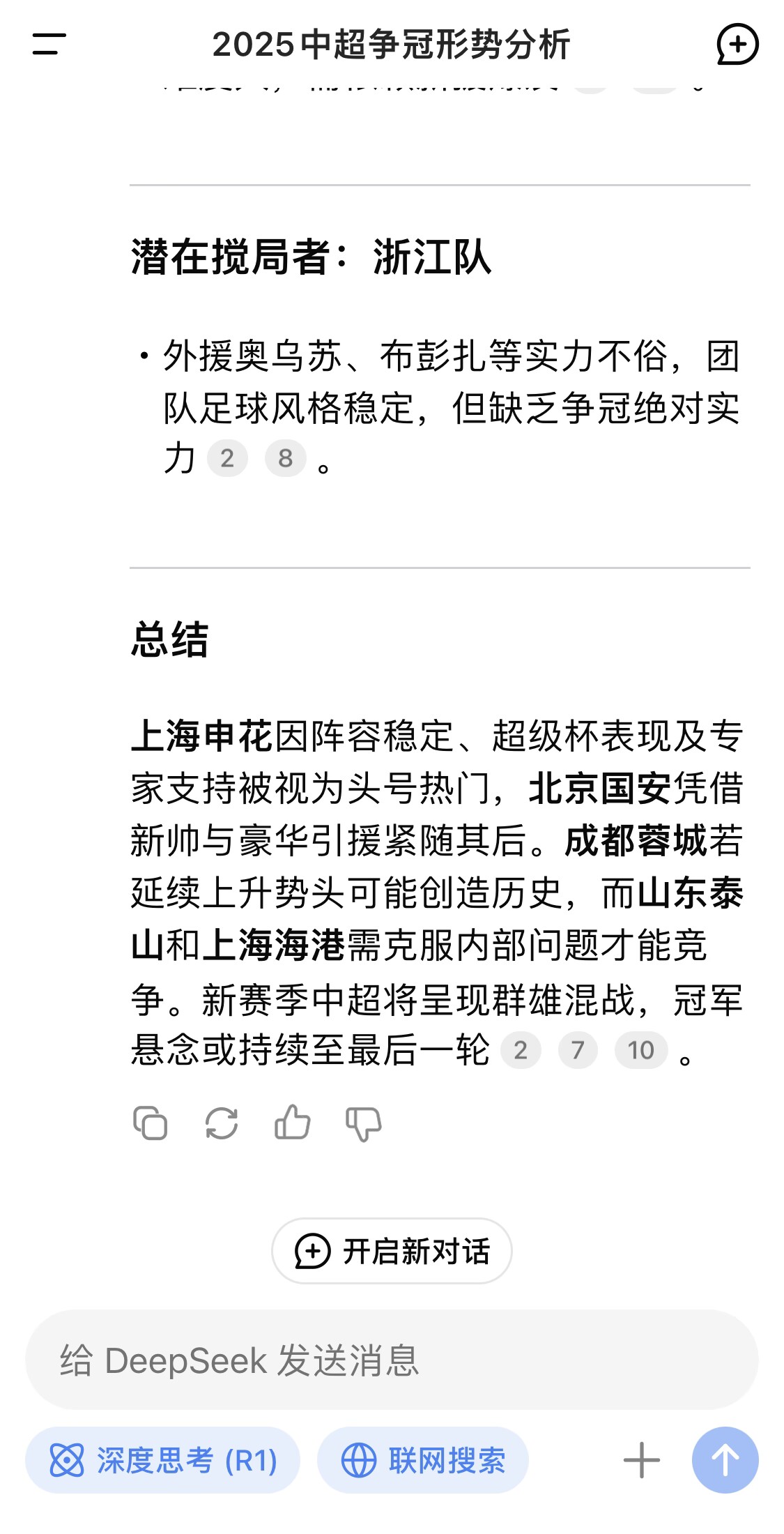 DeekSeek预测:申花是冠军