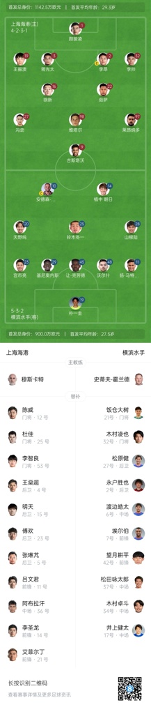 02月19日讯 北京时间今晚20点,亚冠精英联赛东亚区第8轮,上海海港坐镇主场对阵横滨水手,赛前首发阵容公布。横滨水手赛前更新名单,原本在替补席的39号渡边泰基缺席比赛。