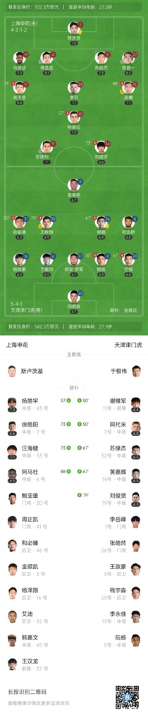 申花2球领先!蒋圣龙破门!第45+3分钟,高天意主罚任意球传中,蒋圣龙前点顺势垫射,皮球从闫炳良两腿之间穿裆入网,上海申花2-0天津津门虎!↓
