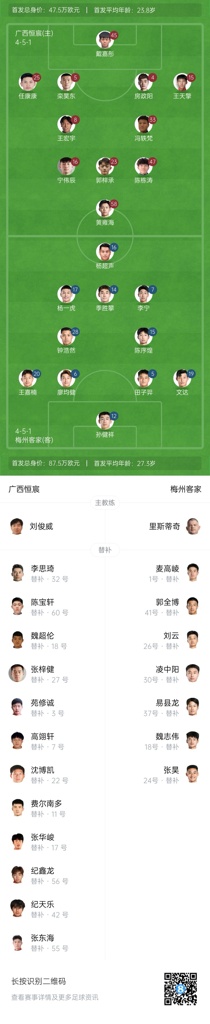 足协杯-广西恒宸vs梅州客家首发:全华班PK,杨超声、廖均健先发